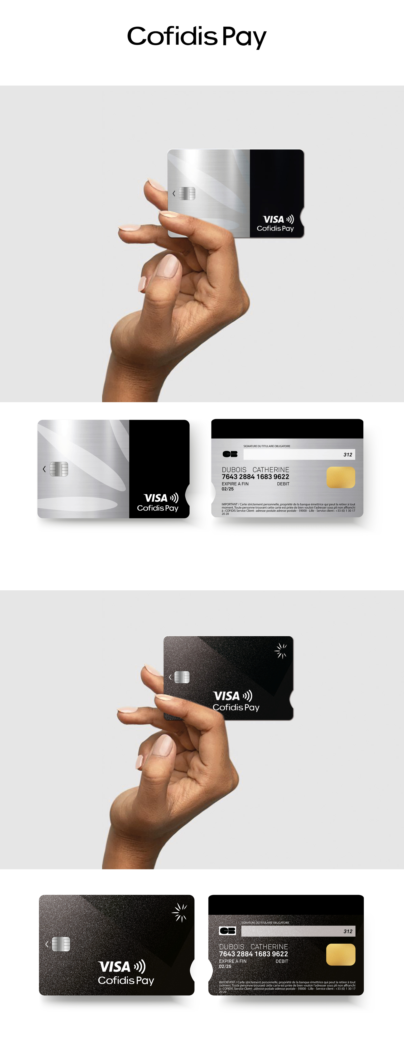 Projet de refonte de la carte de paiement Cofidis Pay. Une carte ancrée dans la modernité et utilisant les nouveaux codes de l'univers du paiement fractionné.