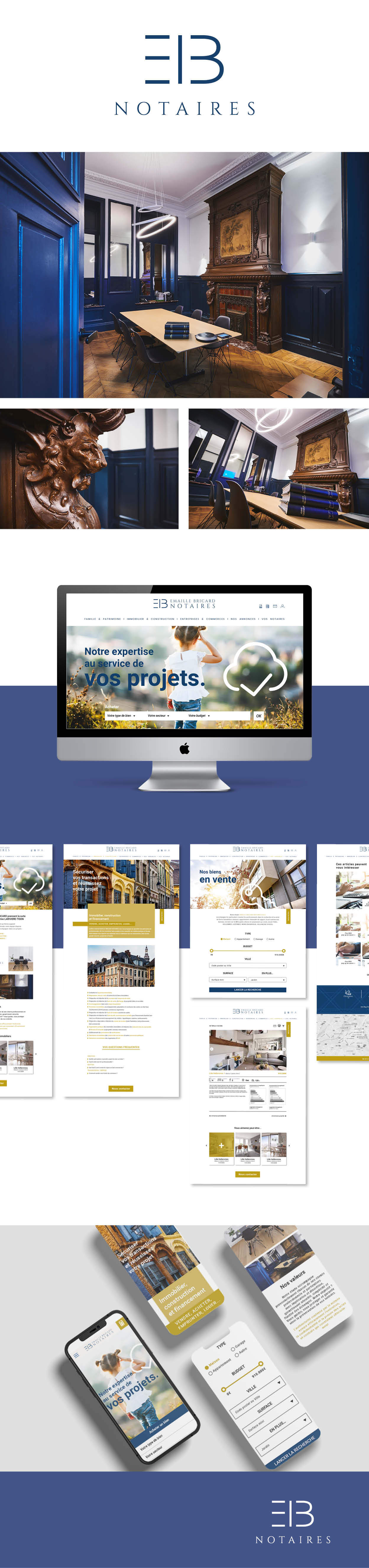 Création du design de la Onepage, gestion du développement, de l'enregistrement auprès de la chambre des notaires, des validations légales pour la mise en ligne.
