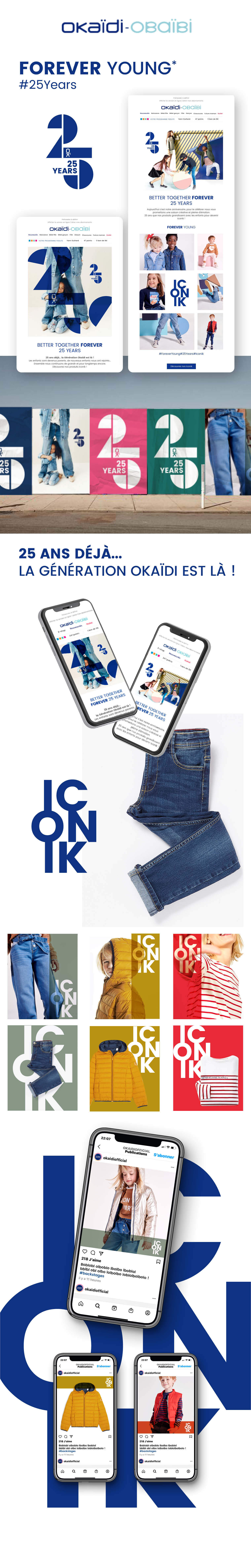 Anniversaire des 25 ans d'Okaïdi. Okaïdi est une marque de mode pour enfants. A l'occasion de ses 25 ans, elle souhaitait créer l'événement autour de ses produits iconik.